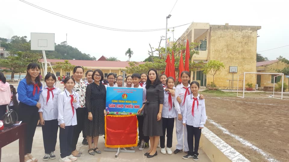 Đồng chí Hoàng Thị Thanh Phương Phó Bí thư quận Đoàn đén dự khánh thành sân chơi cho thiếu nhi tại trường THCS Vạn Sơn.