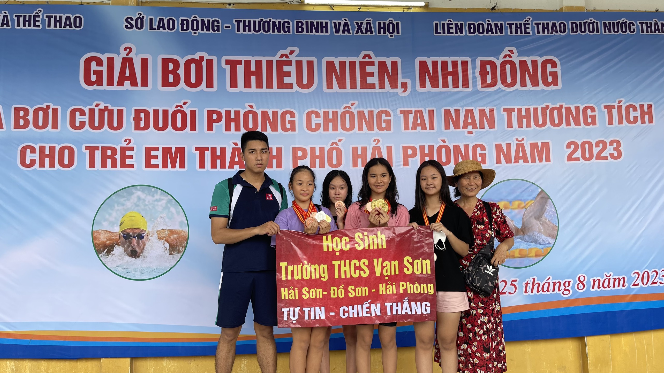 Tham gia giải bơi thiếu niên, nhi đồng, giiải bơi cứu đuối phòng chống tai nạn thương tích, đội bơi của học sinh trường THCS Vạn Sơn do thầy giáo Lưu Đắc Thắng dẫn đội đã đạt thành tích xuất sắc với 4 huy chương vàng, 1 huy chương bạc và nhiều huy chương đồng. Trong đó em Đinh Thị Anh Thư lớp 9A4 xuất sắc đoạt 3 huy chương vàng, Em Lê Ngọc Khánh Huyền đoạt 1 huy chương vàng.