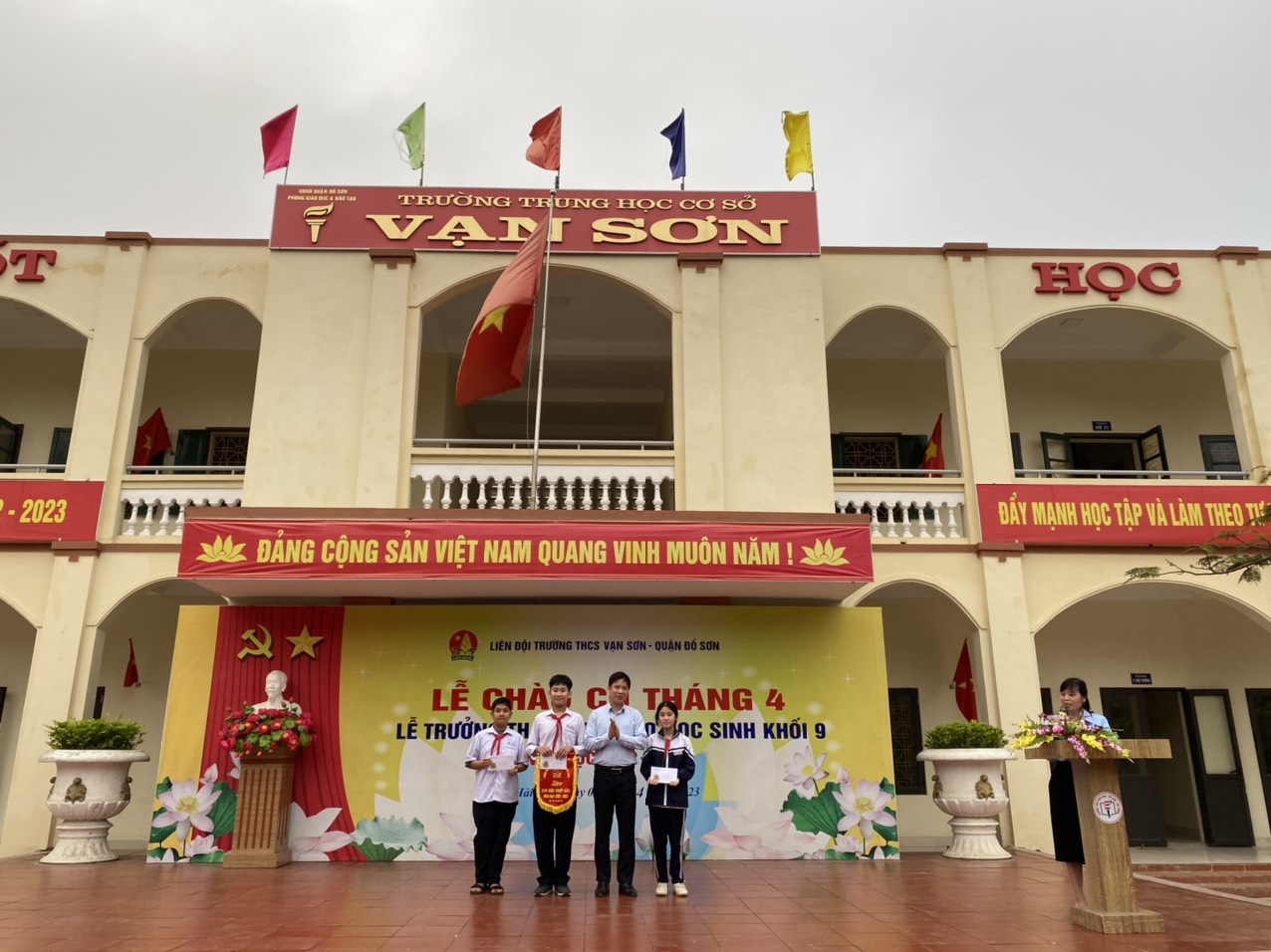 🌺🌺🌺 LỄ CHÀO CỜ THÁNG 4 NĂM HỌC 2022 - 2023 🌺🌺🌺 ☘️ Sáng ngày 3/4/2023, Liên đội Trường THCS Vạn Sơn tổ chức Lễ chào cờ tháng 4 chủ đề: "Hòa bình và Hữu nghị". Lễ trưởng thành Đội cho học sinh Khối 9 năm học 2022-2023. Tham dự Lễ chào cờ có: